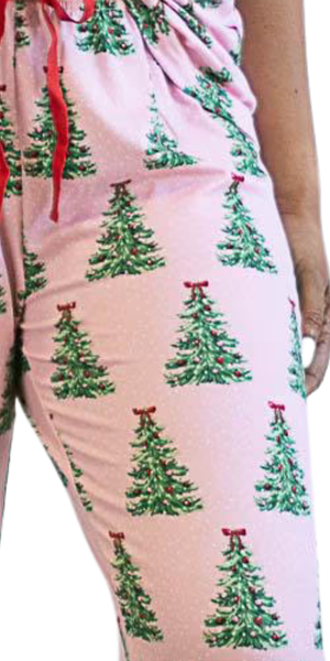 Celebrate the holidays in cozy style with these festive pajama bottoms. Crafted from soft, lightweight fabric and decorated with green Christmas trees on a pink background, they’re perfect for gifting or lounging in as you unwrap presents on Christmas morning. Size up for loose fit